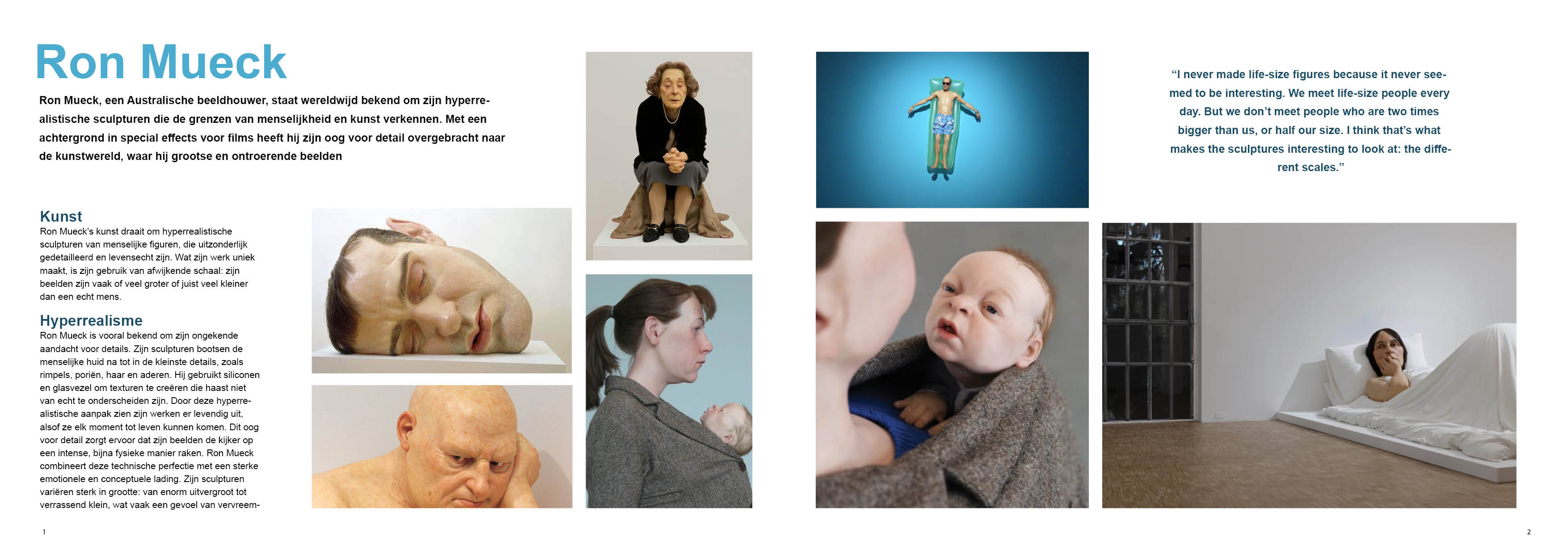 Ron Mueck is een Australische beeldhouwer, geboren in 1958, die bekendstaat om zijn hyperrealistische sculpturen van mensen. Hij begon zijn carrière in de filmindustrie als poppenmaker voordat hij zich volledig op beeldhouwkunst richtte.